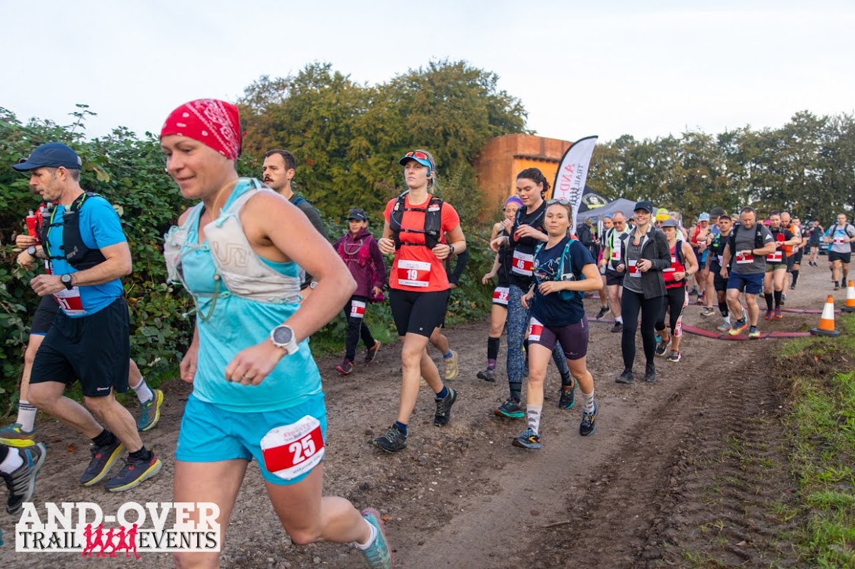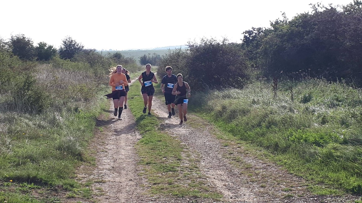 A trail race across ancient ridgelines, burial mounds, and open chalk landscape.